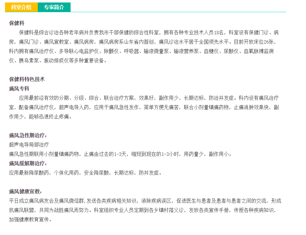 中心拥有一整套规范化的痛风药物、饮食及运动治疗方案,所推广应用的痛风“分期、分级、综合、联合治疗”疗法,居于国内领先水平。